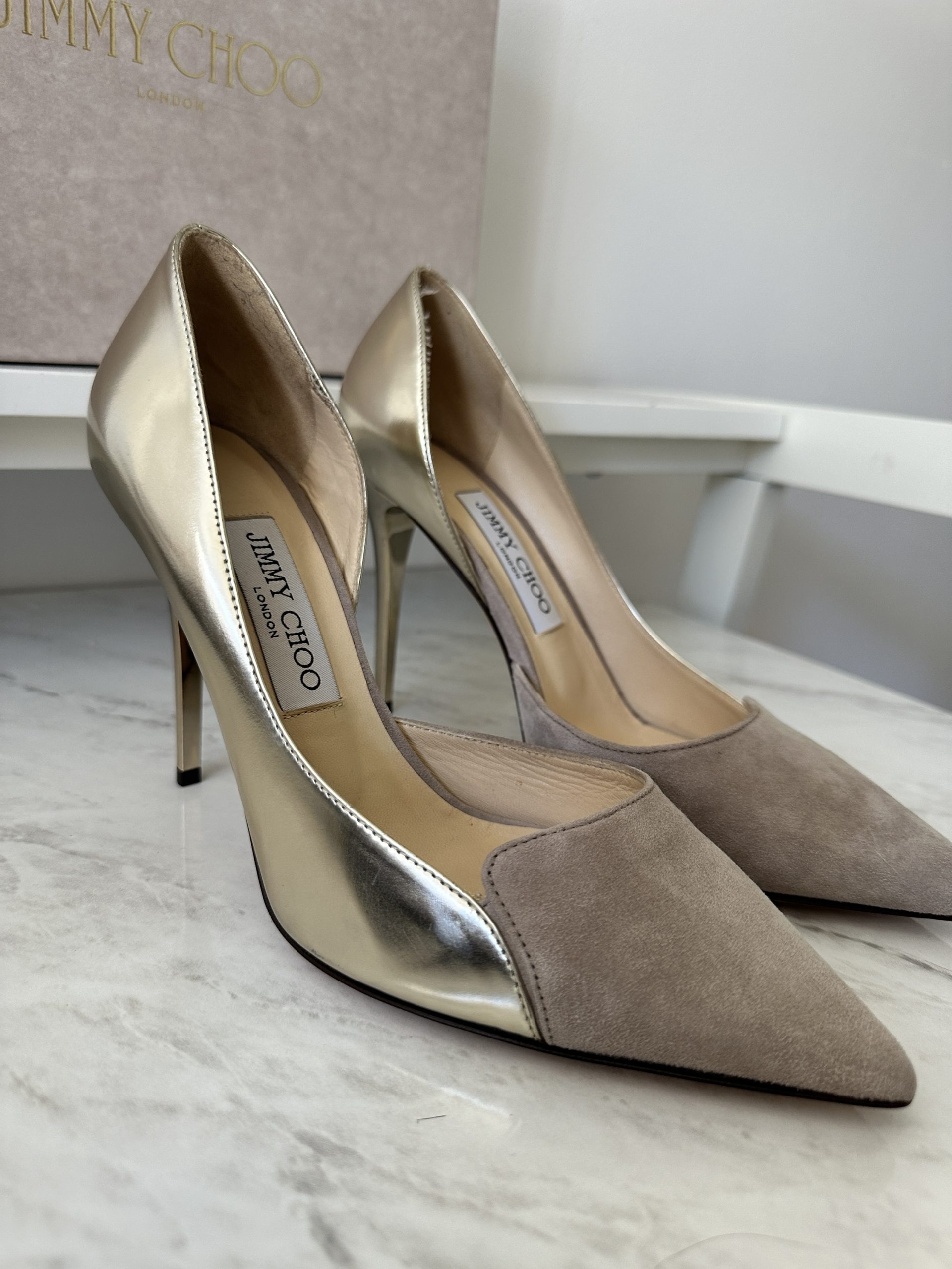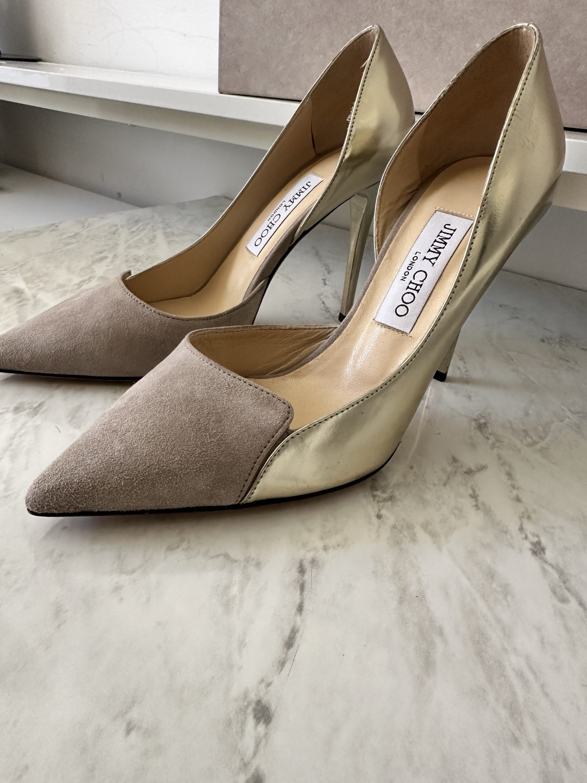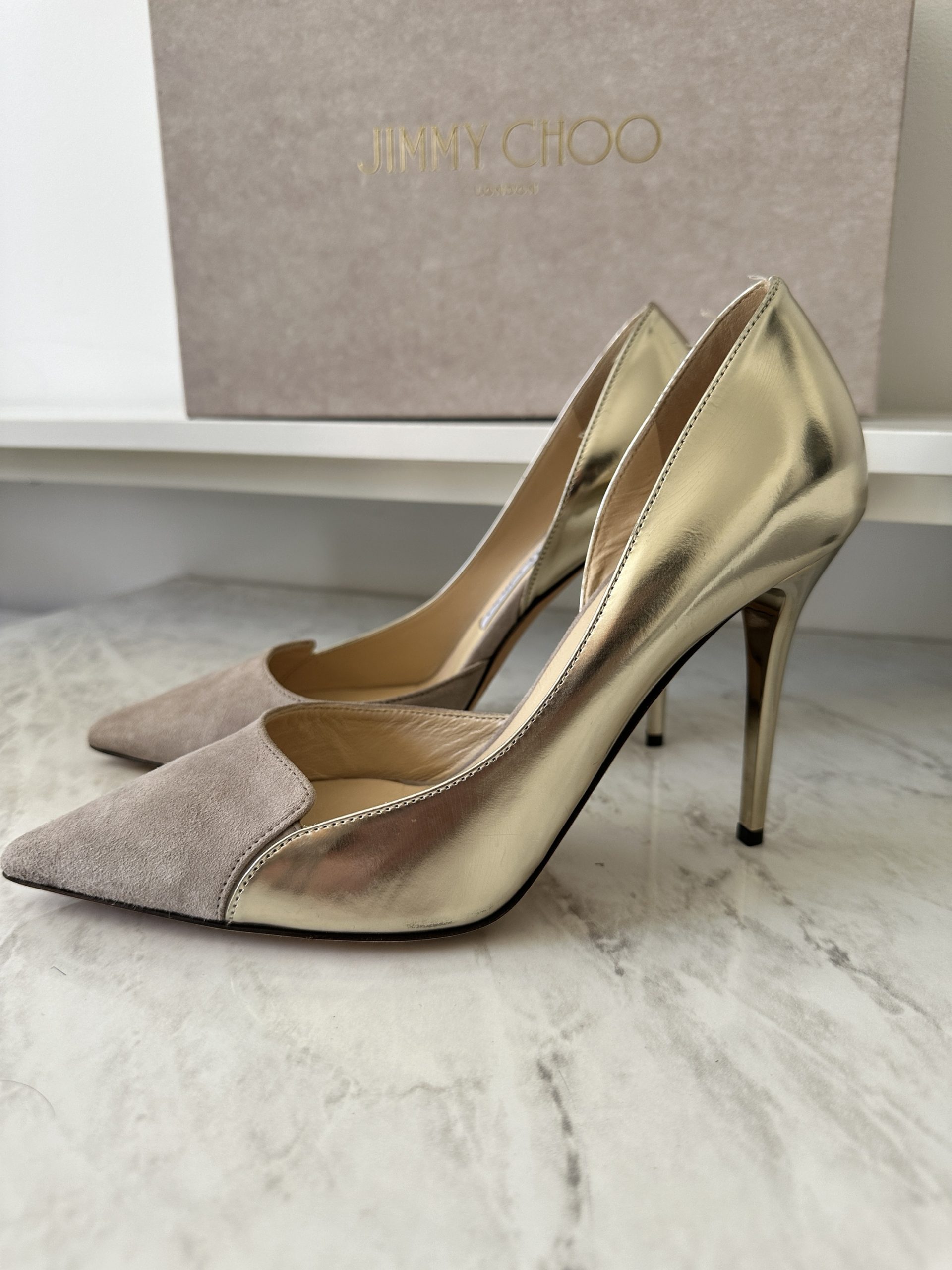 Jimmy Choo Suede Gold Pumps
