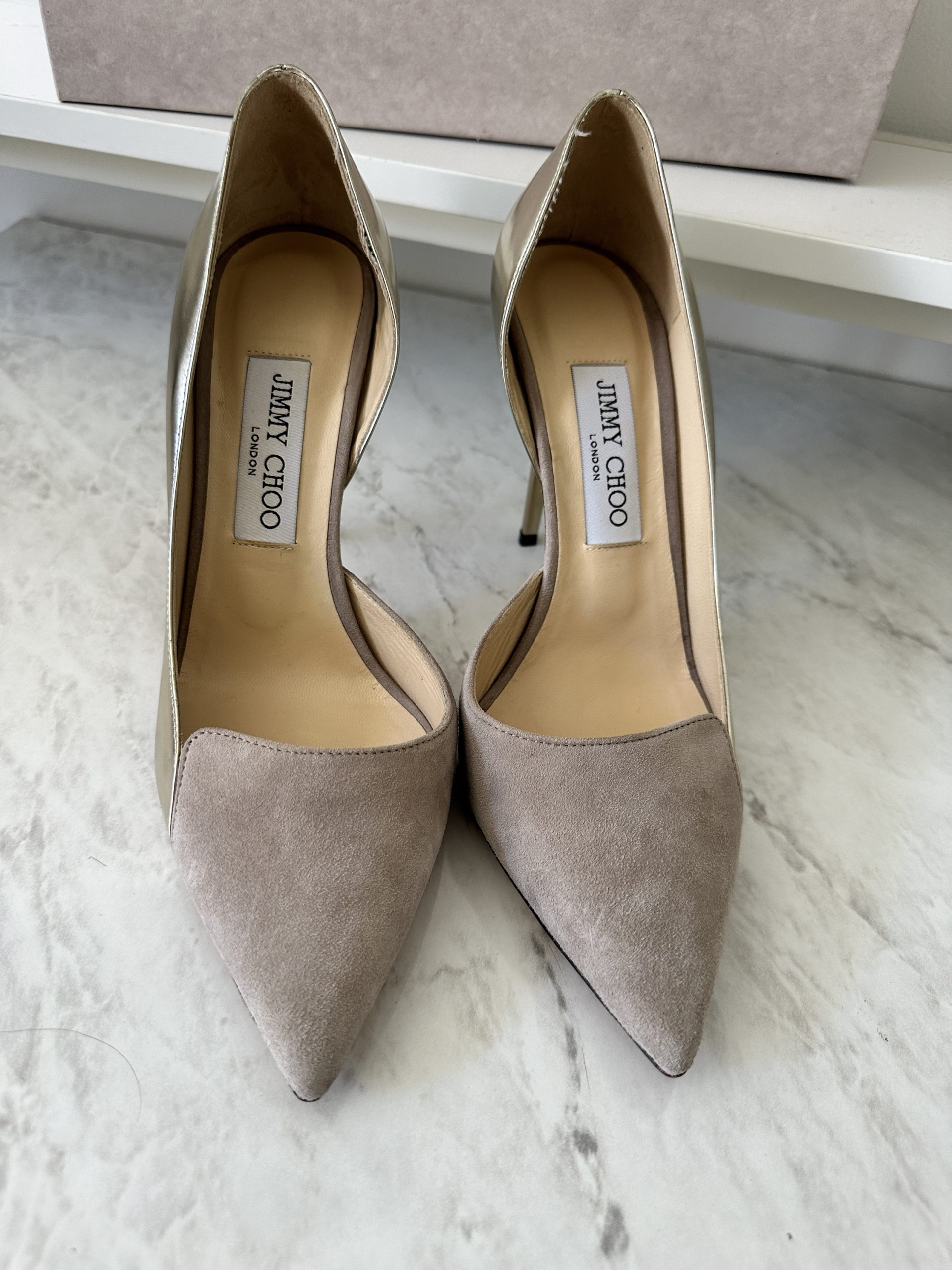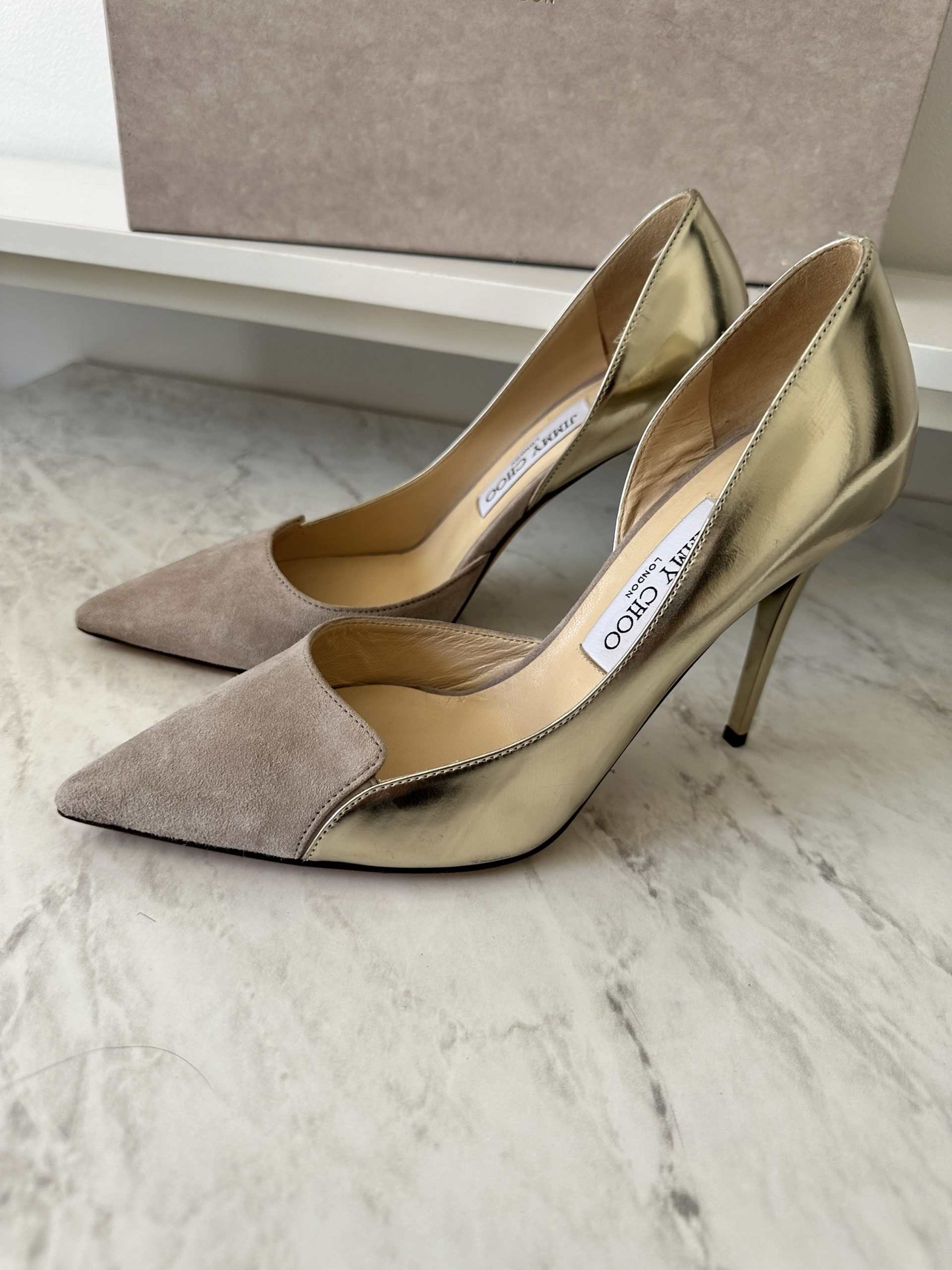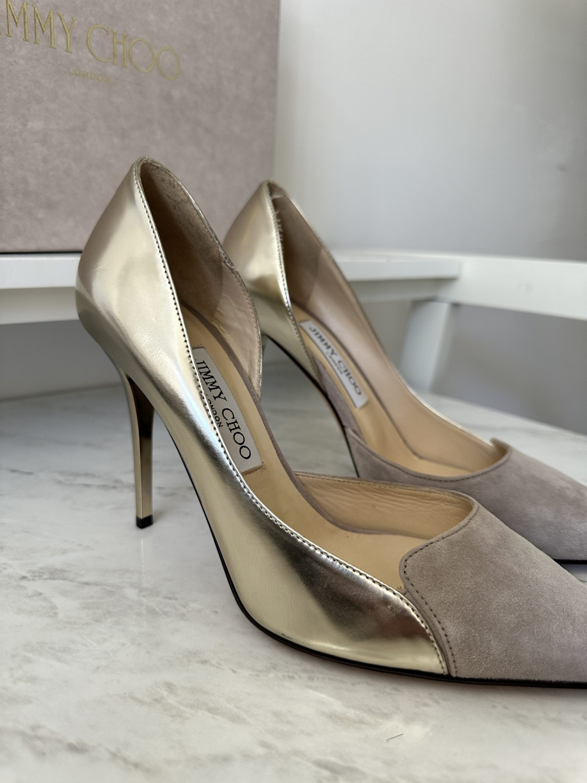 Jimmy Choo Suede Gold Pumps
