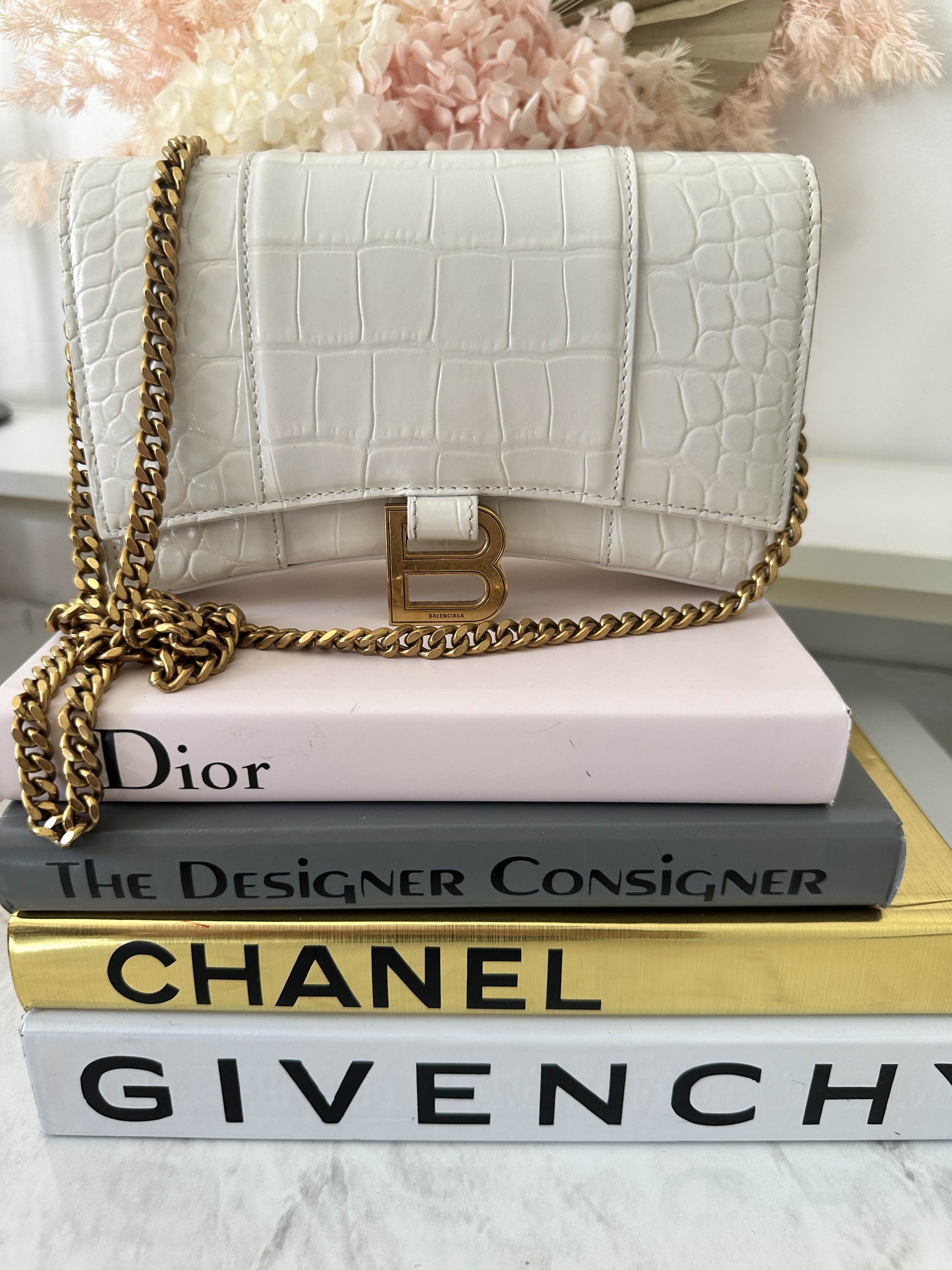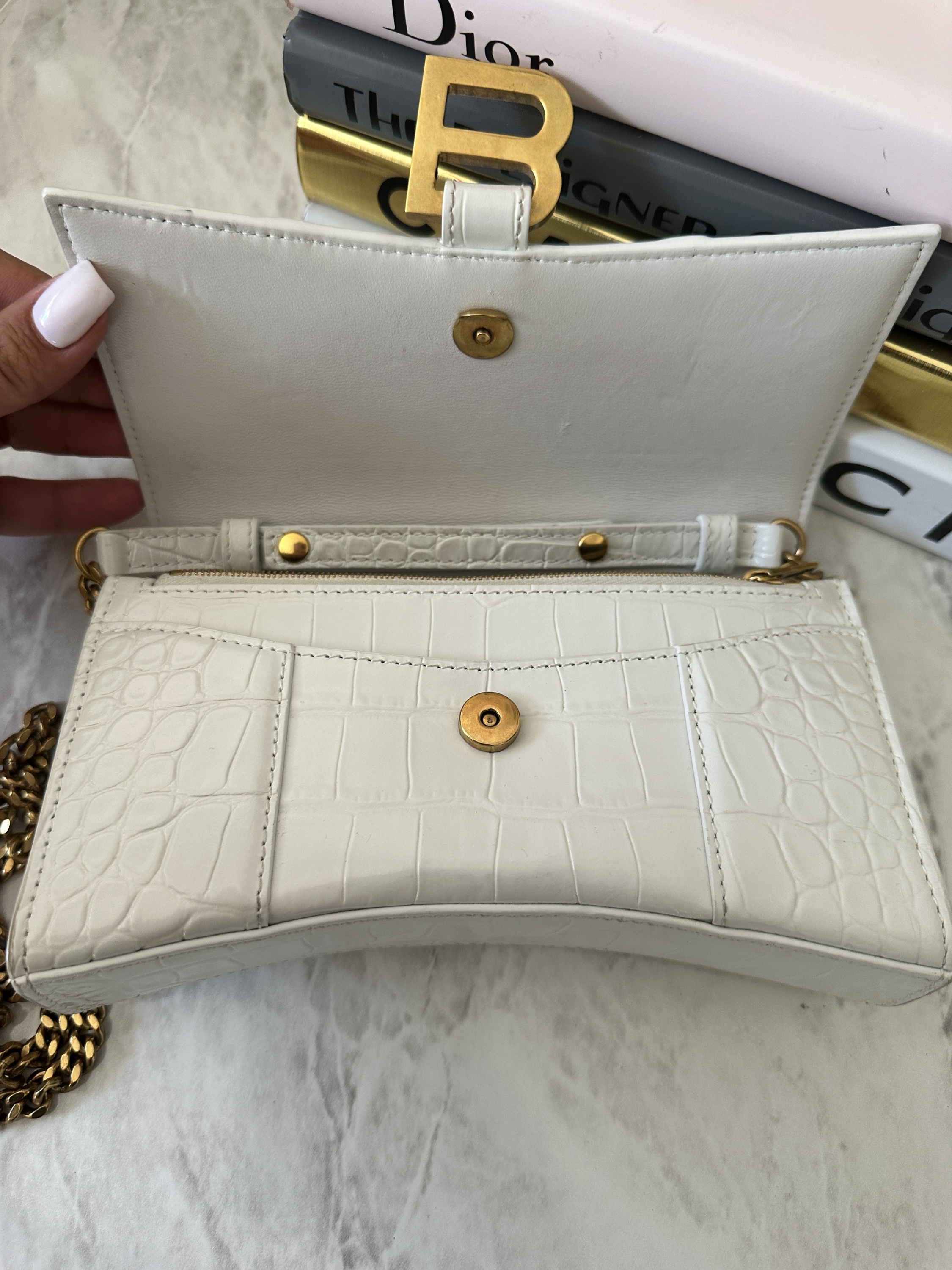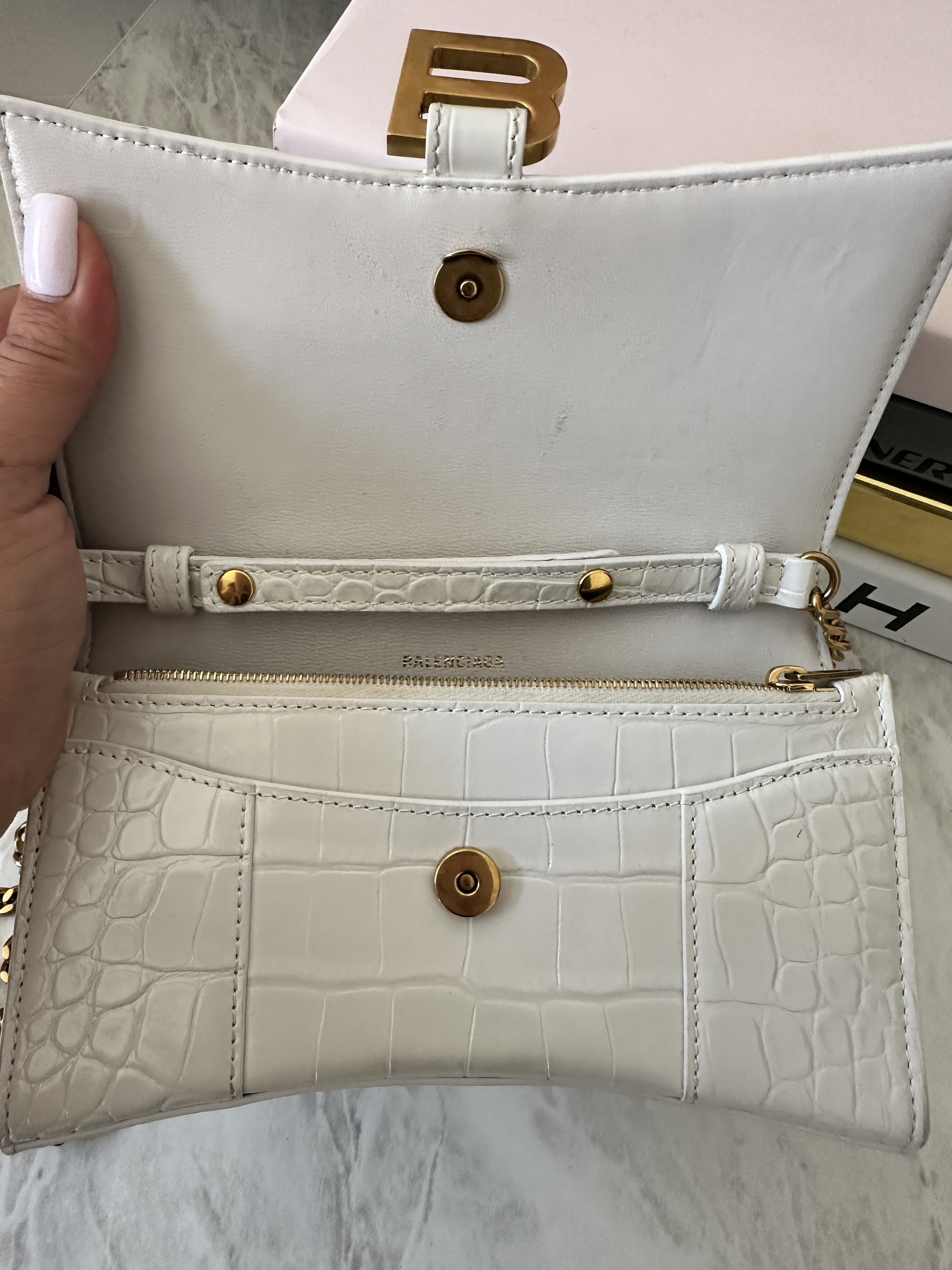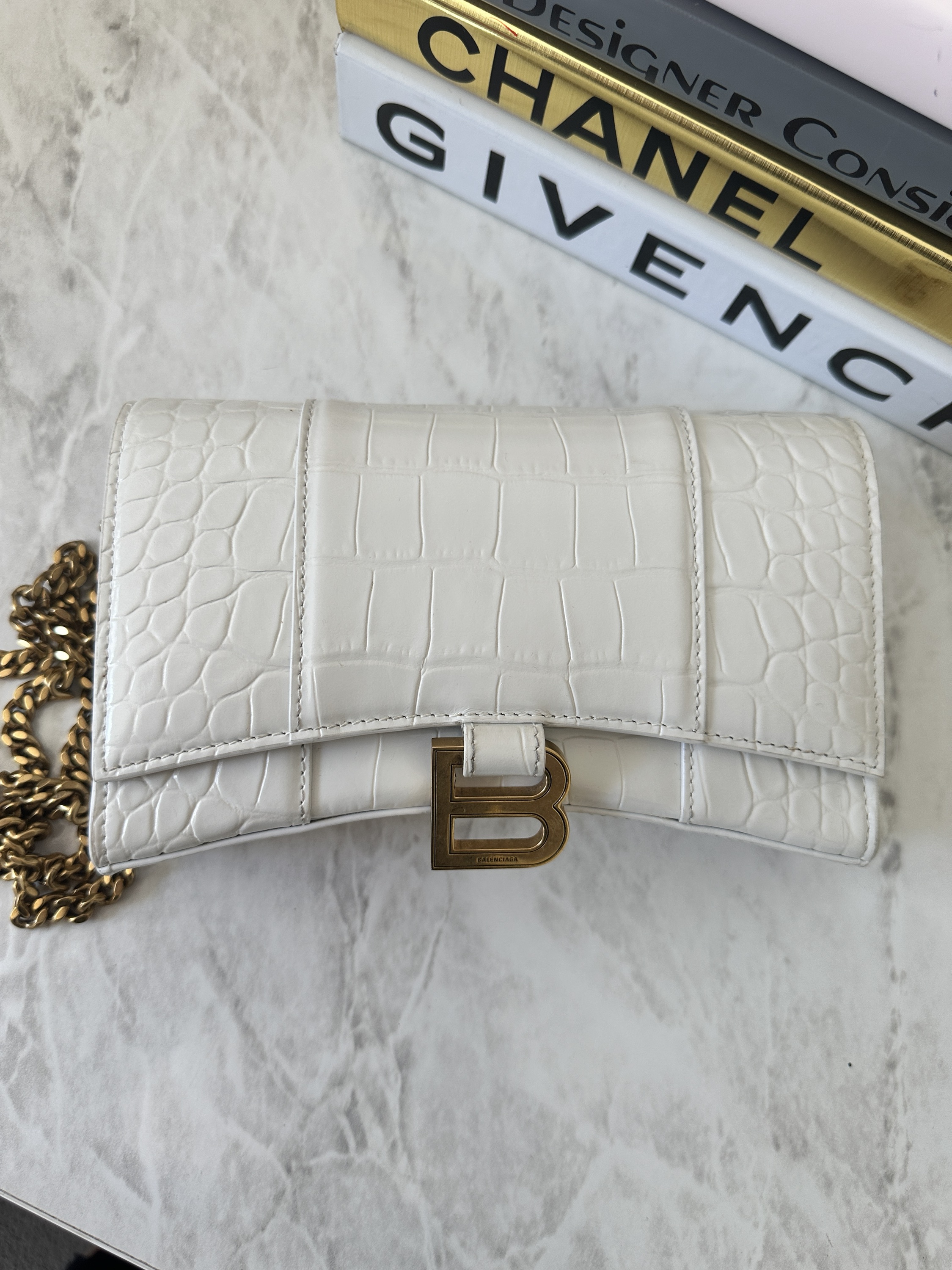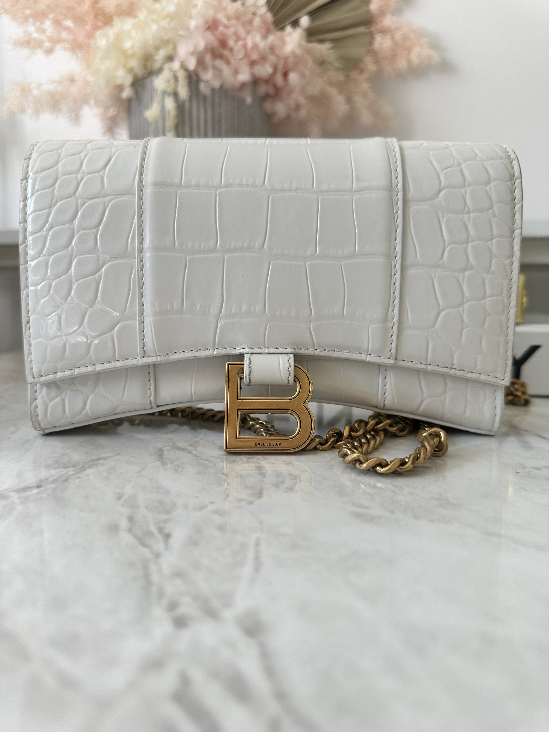 Balenciaga hourglass crocodile embossed WOC